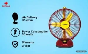 6. Havells 55watts Table Fan